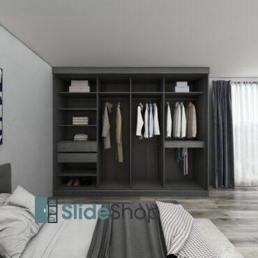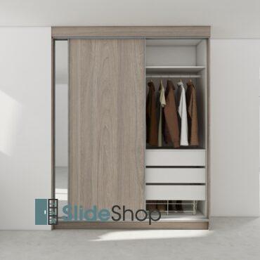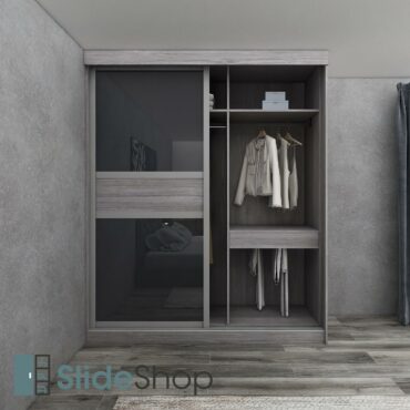 Vienna Series | Urban Double Sliding Door Wardrobe | W1950mm | Exterior boxing in Smoked Ash Timberland, carcass & back panel in warm white naturale, doors in Smoked Ash Timberland & smokey mirror.