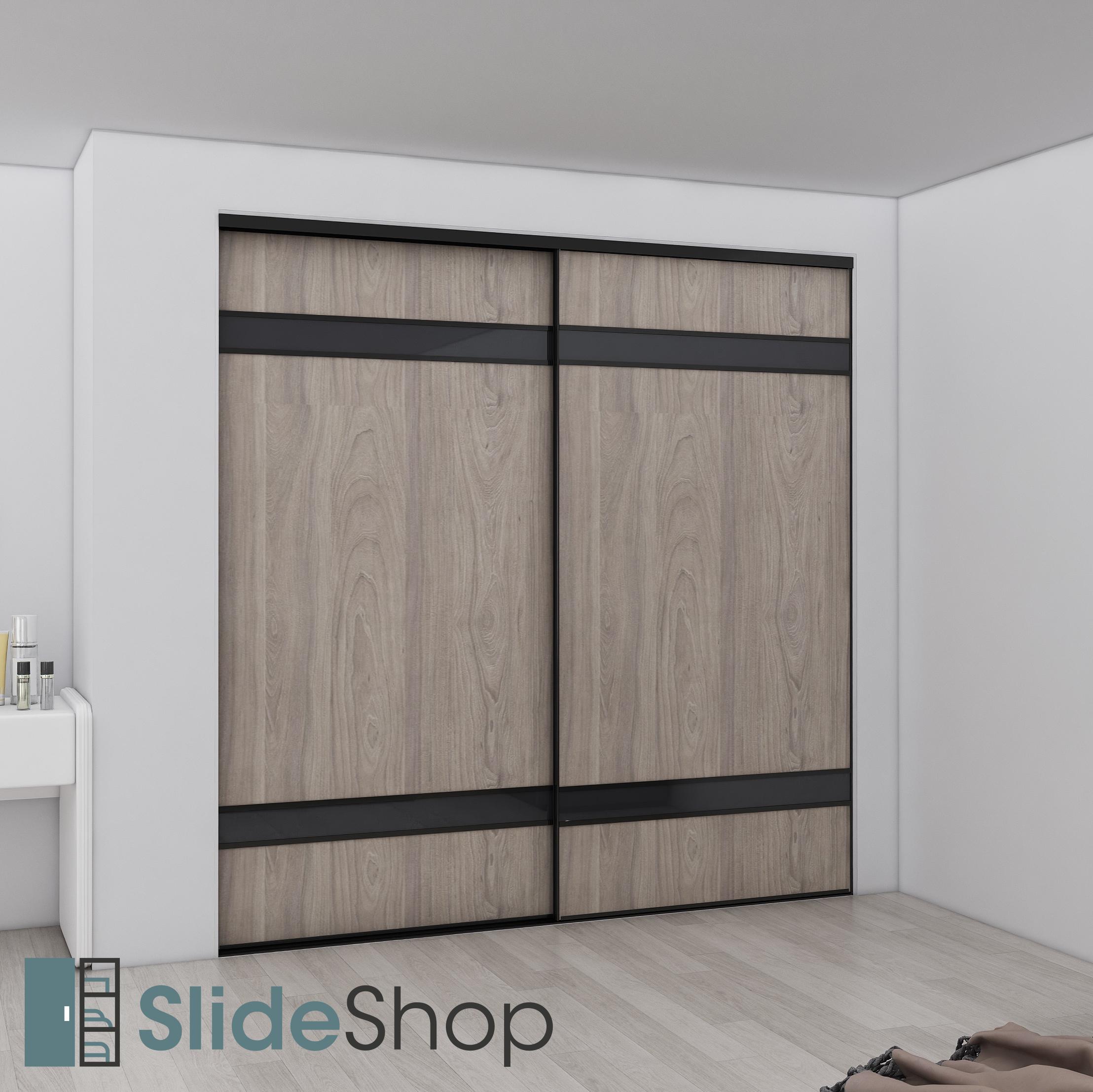 Custom-made set of sliding doors in melamine and aluminium frame and track. Height up to 2400mm.