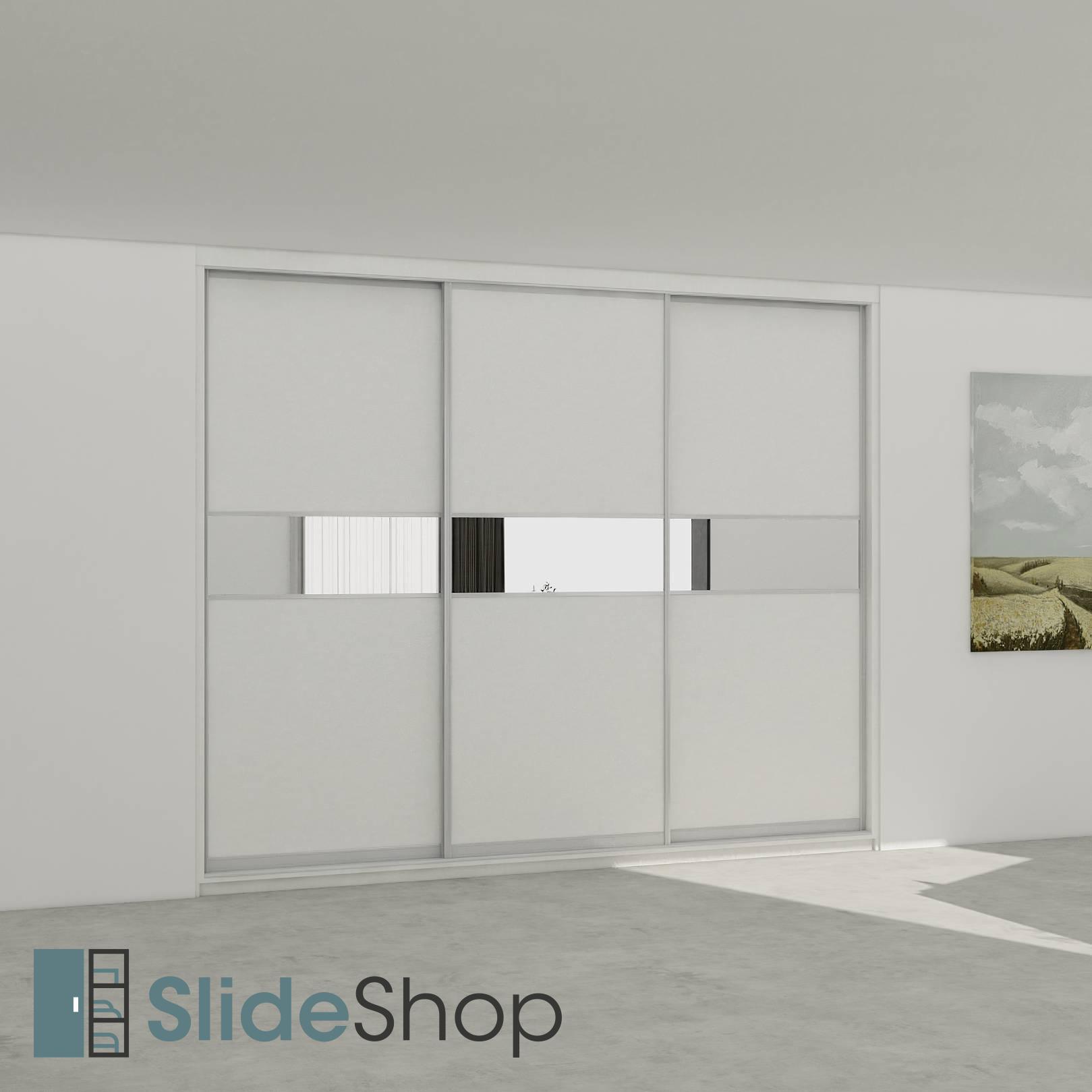 Classic Duo Centreline in the Melteca Melamine Warm White Naturale, centre 300mm strip in Silver Mirror.