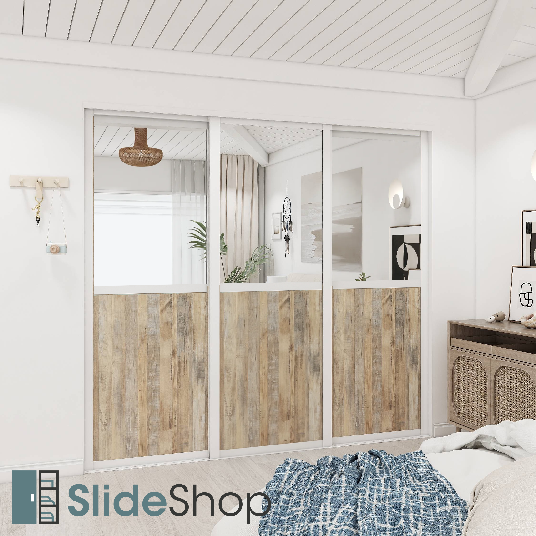 Coastal Duo 2 Division in Melteca Melamine Salvaged Planked Elm Organic, top in Silver Mirror