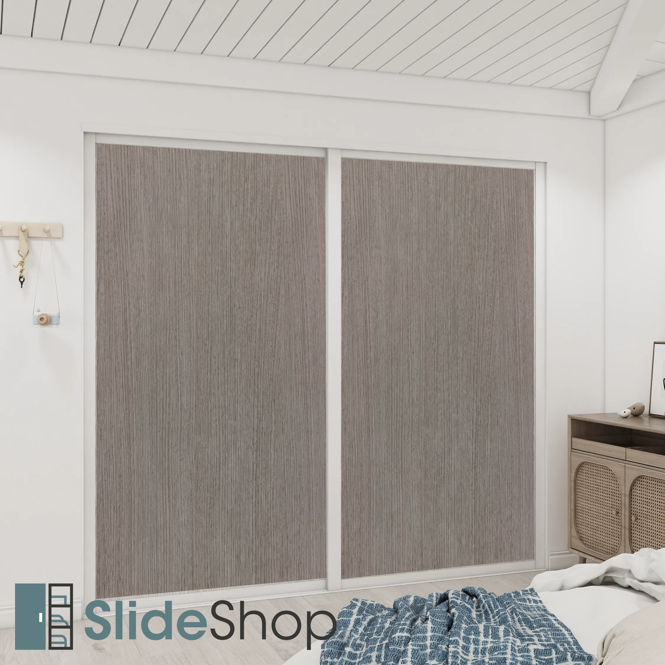 Doors are made-to-measure to fit the door opening, with wheels and guides pre-fitted to the panel.