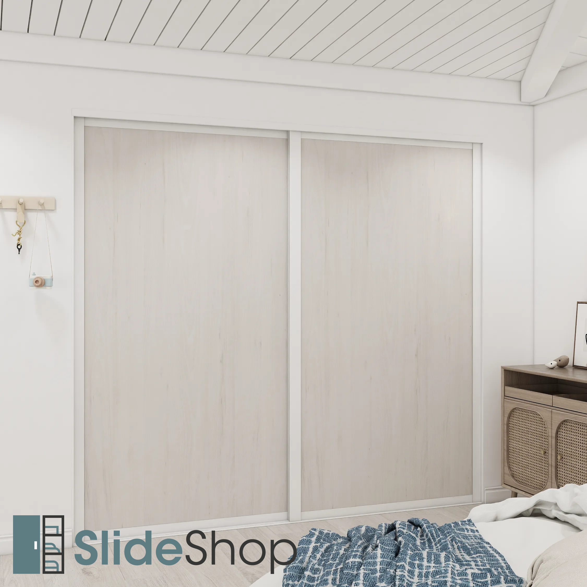 Doors are made-to-measure to fit the door opening, with wheels and guides pre-fitted to the panel.