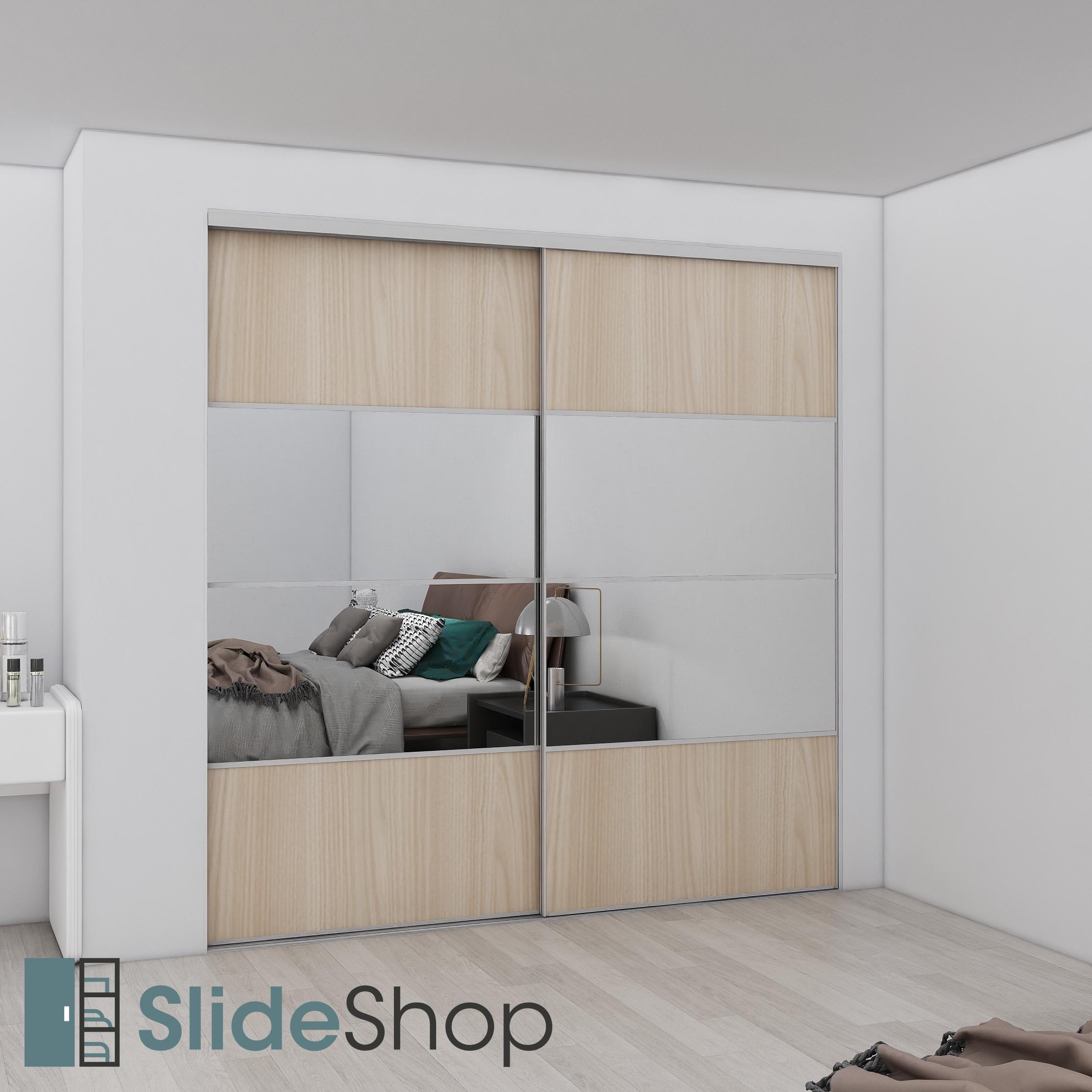 Elementi Duo 4 Division in Bestwood Melamine Vintage Ash Timberland, Centre Panels in Silver Mirror