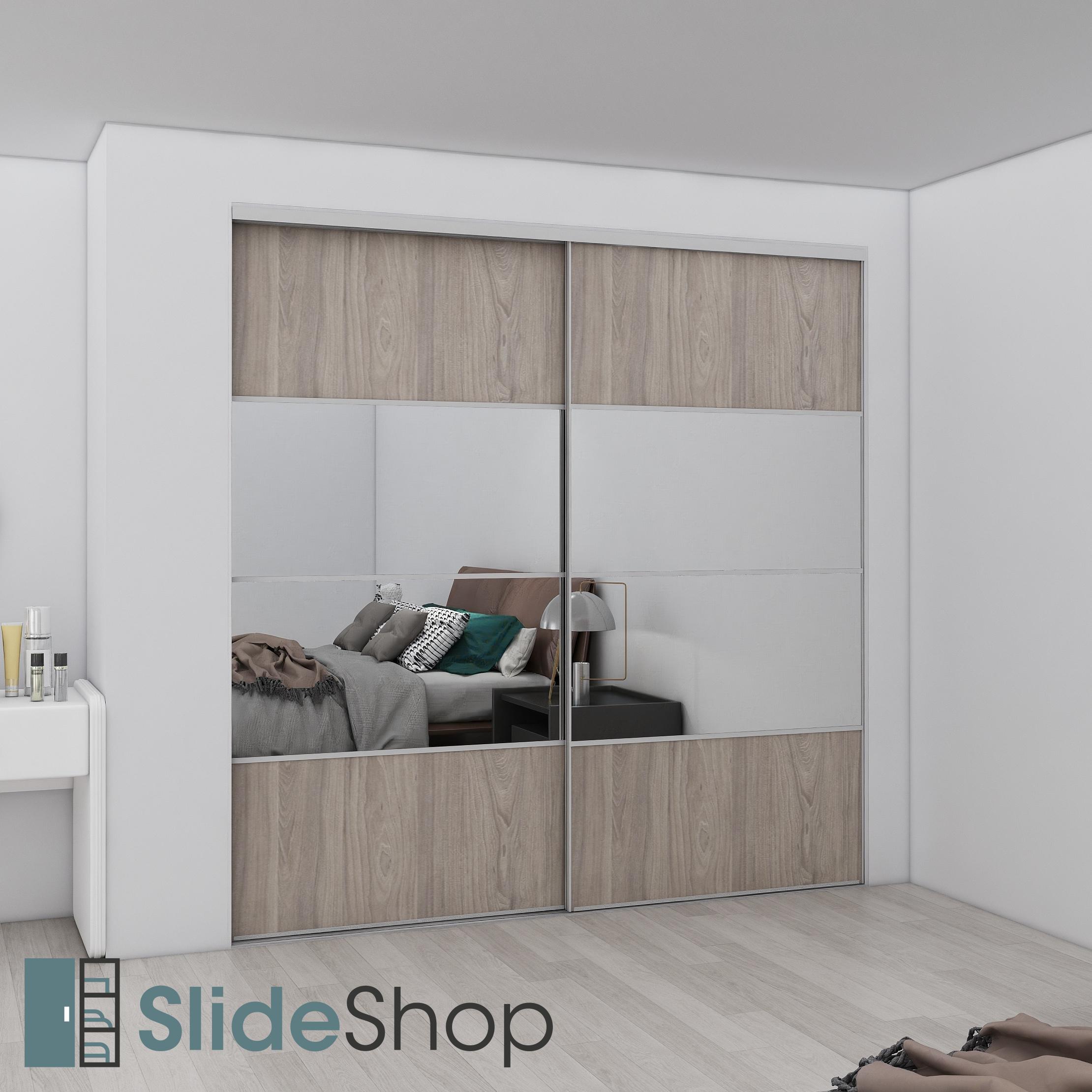Elementi Duo 4 Division in Prime Melamine Dusky Elm Timberland, Centre Panels in Silver Mirror
