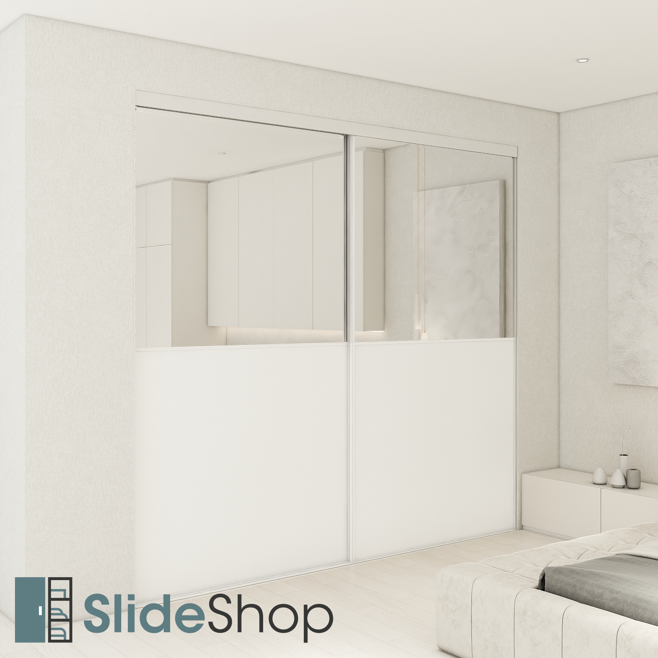SKU: MIN-D2D-MRWW Categories: Minimalist Range, Sliding doors Tags: Silver Mirror, Warm White Melamine