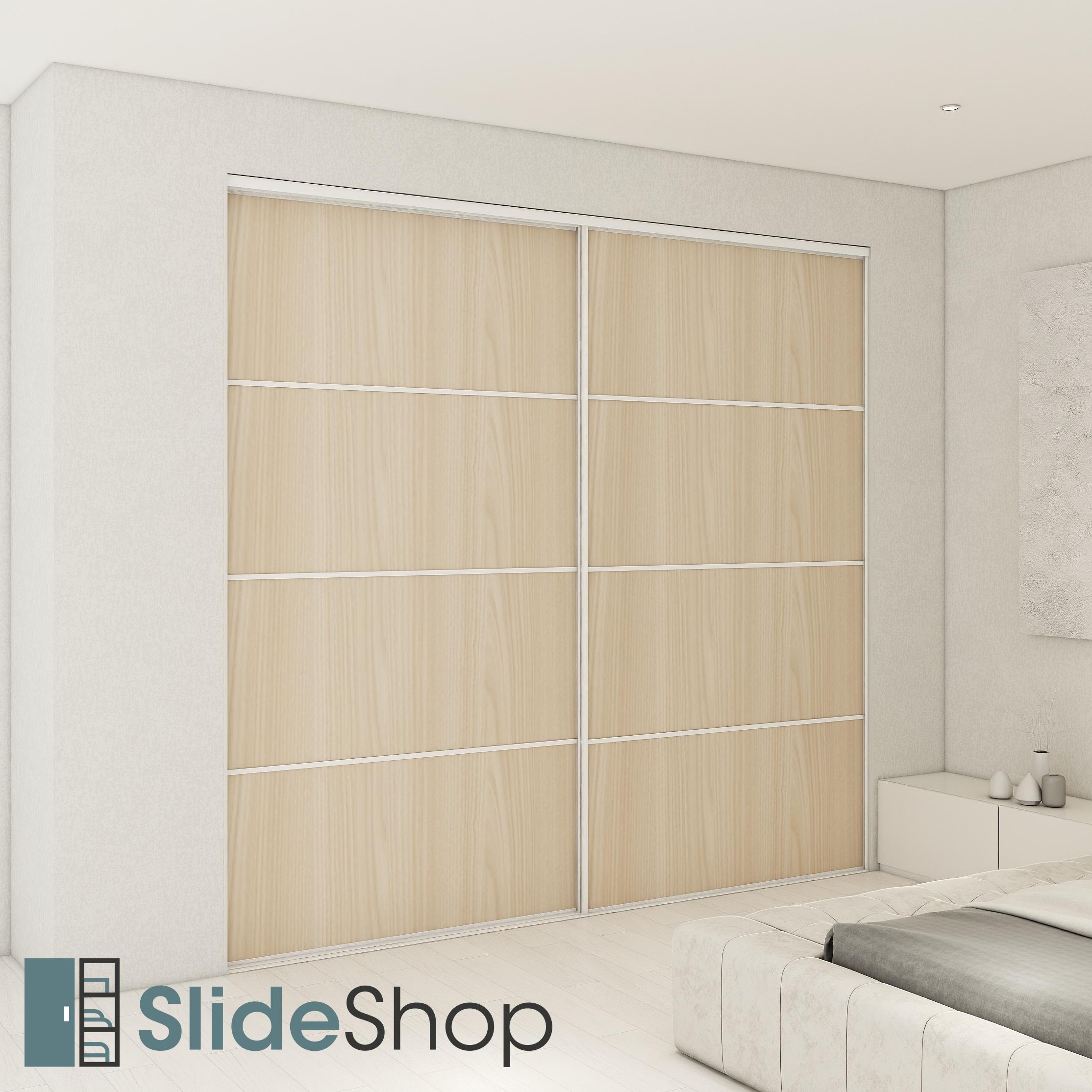 Doors are made-to-measure to fit the door opening, with wheels and guides pre-fitted to the panel.