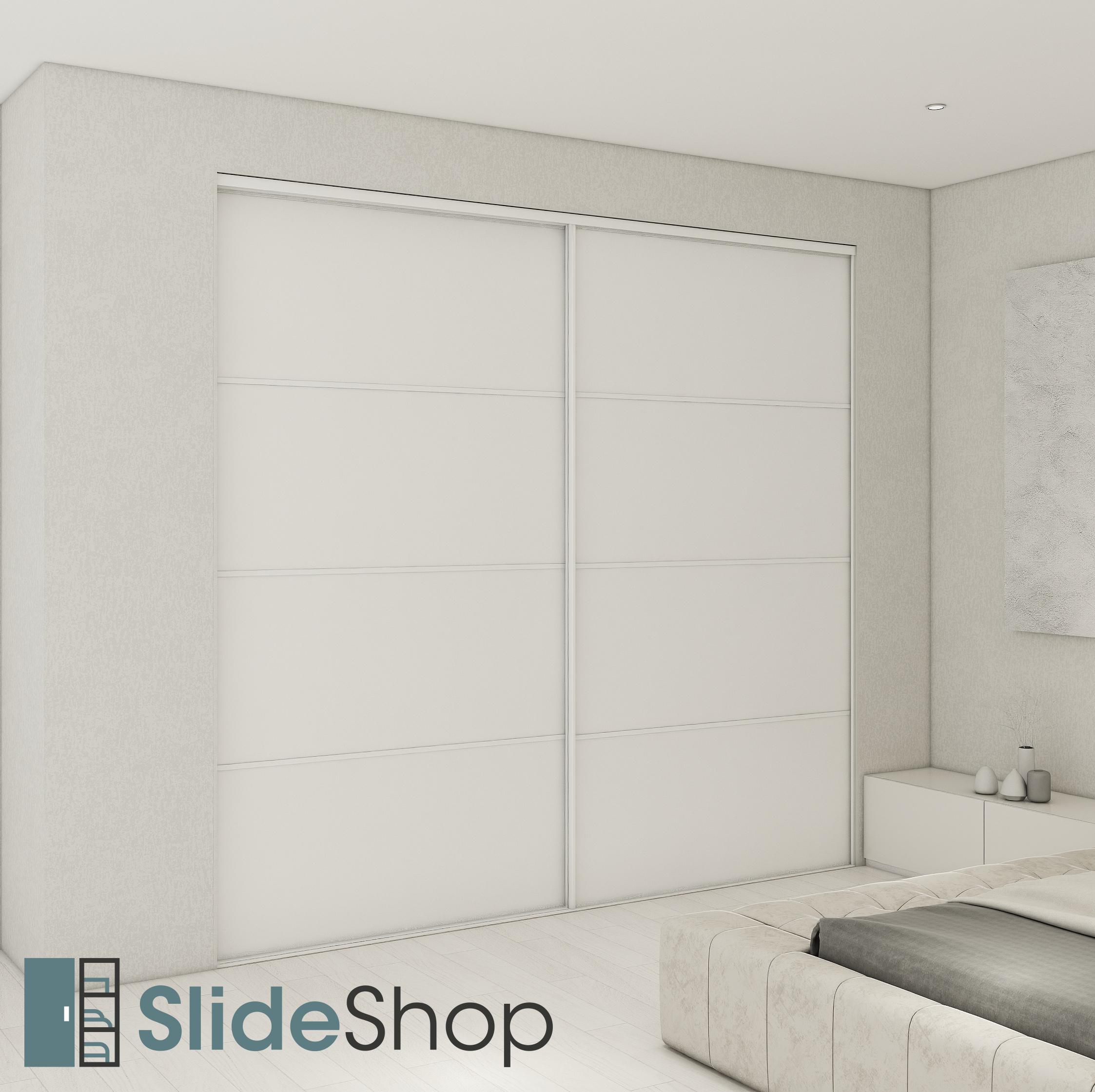Doors are made-to-measure to fit the door opening, with wheels and guides pre-fitted to the panel.