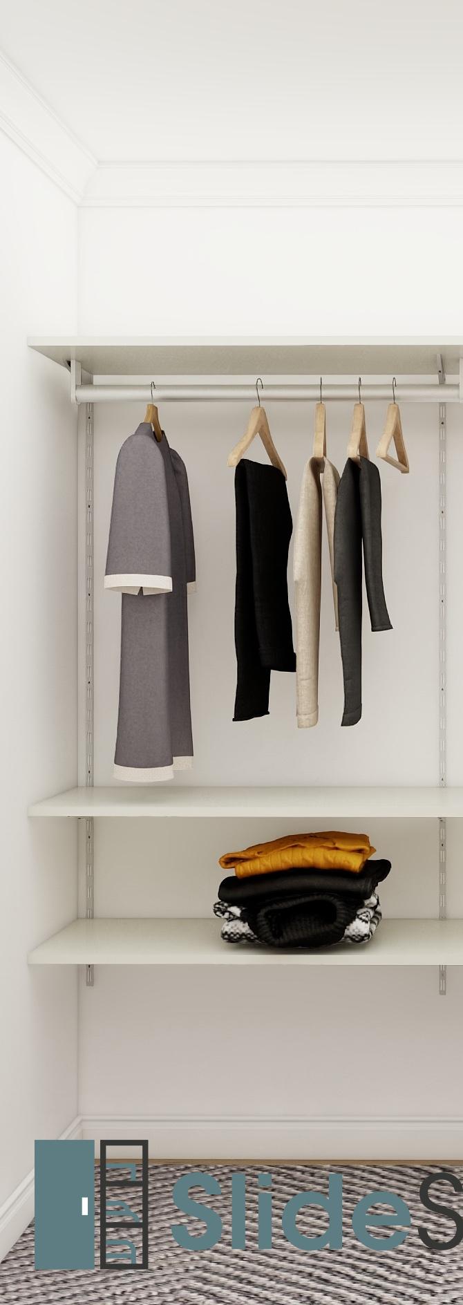 Featuring durable metal back strip supports, this shelving organiser provides reliable stability for all your belongings. The adjustable shelving allows you to customise the layout to accommodate items of various sizes, ensuring efficient use of space. Additionally, hanging rails are included to further optimise your storage solution, providing a convenient spot for clothing or other hanging items.