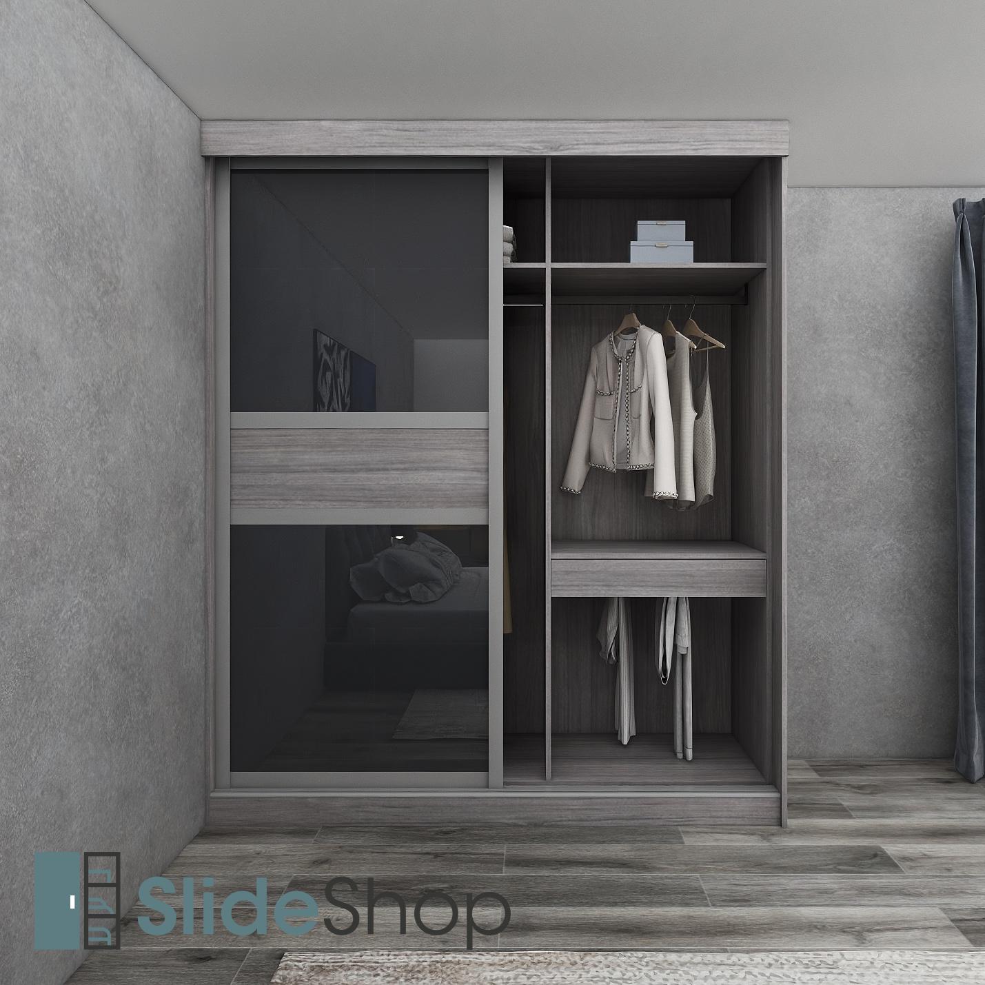 Vienna Series | Urban Double Sliding Door Wardrobe | W1950mm | Exterior boxing, carcass & back panel in Smoked Ash Timberland, doors in Smoked Ash Timberland & smokey mirror