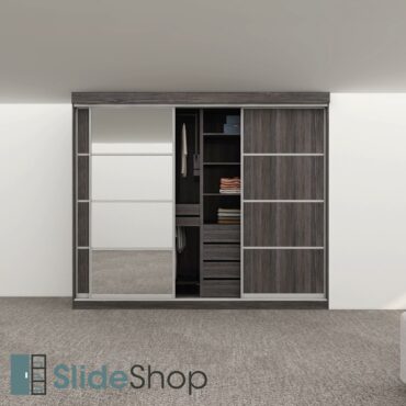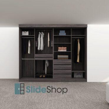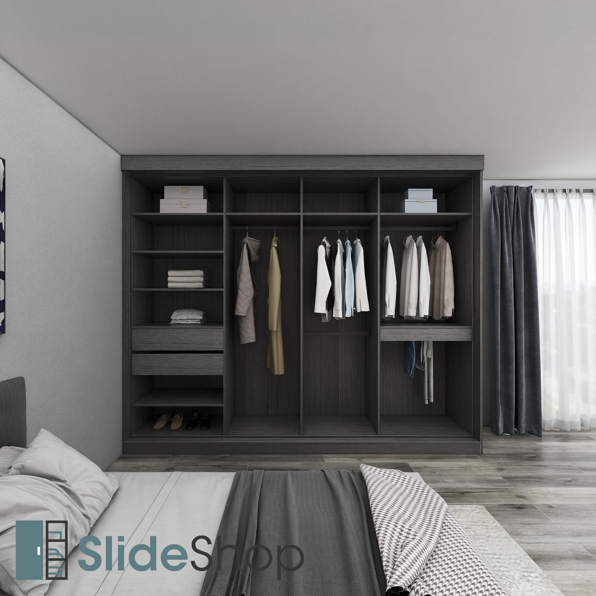 Overall height 2400mm. Width 2900mm. Carcass depth 520mm, overall depth 650mm, (handle option depth is 690mm). Sliding doors 3 x Urban Single 2 Equal Division style. Featuring drawer storage and pull out trouser rack.